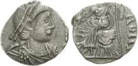 Roma seated left on cuirass, holding Victory on globe and scepter; [RVPS]