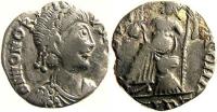 The attribution of these imitative issues to a specific Vandal monarch is speculative. However, some numismatists have attributed this or similar issues to the first and greatest Vandal King Gaiseric (428-477 AD), who was responsible for the second fifth century sack of Rome. If this thesis is correct, this coin may have been struck as early as 455-476 AD. It is interesting to compare the style of these fascinating imitative issues with their Imperial counterparts; some are quite close to the Imperial celators, while others are fairly crude copies. |