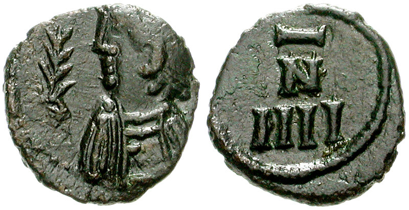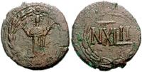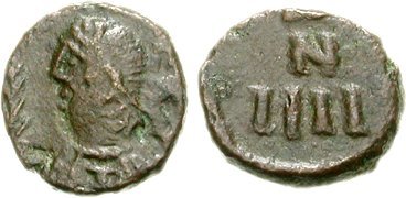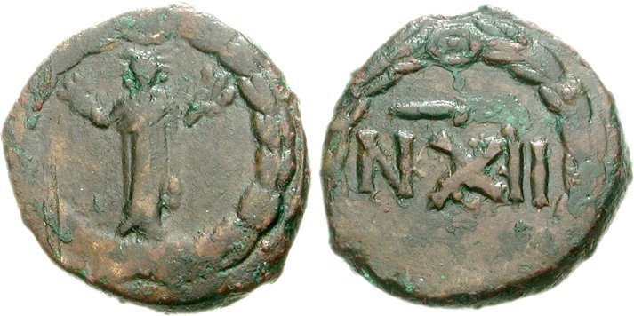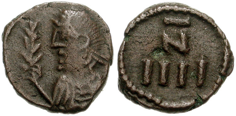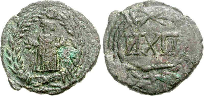 NXII (mark of value) within laurel wreath; pellet in wreath ornament |