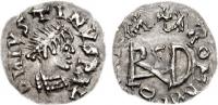 Large “Theodericus” monogram across fields, cross above; all within wreath
