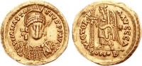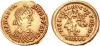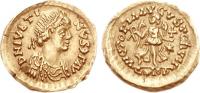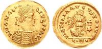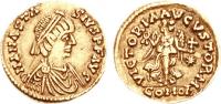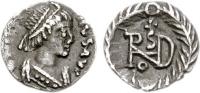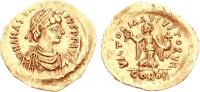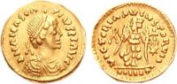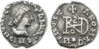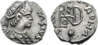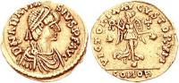 Pearl-diademed bust right, wearing Ostrogothic-style garment; M beneath bust |